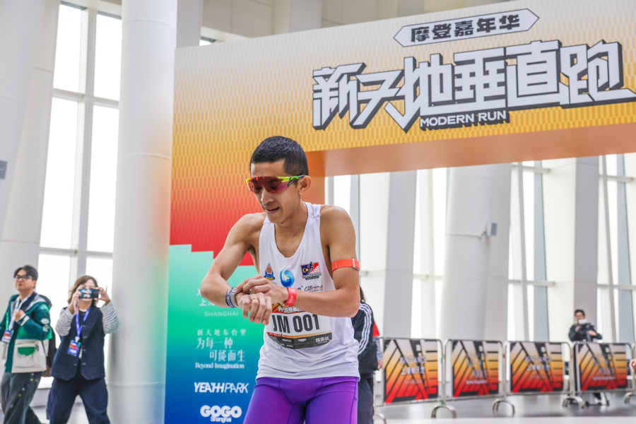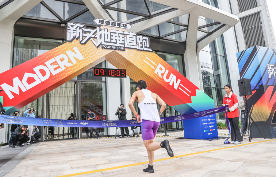 58 层,7分05秒!11月1日上午,来自马来西亚的选手Soh Wai Ching(苏为庆)首个冲过终点线,获得首届新天地垂直跑冠军。
